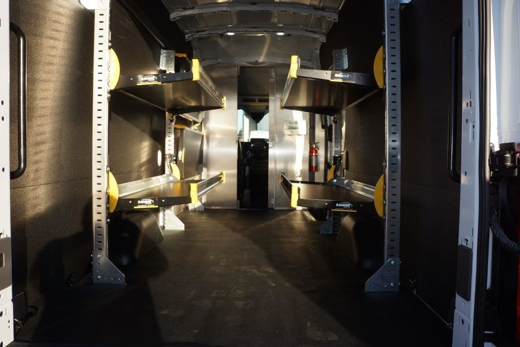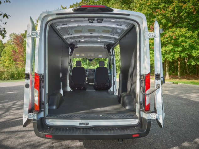 An optional center console with right-side shifter further improves walkthrough and offers more than 7 inches of additional driver legroom. The overhead shelf is now optional, providing more clearance when standing. The Parcel Delivery Package adds 50/50 hinged rear doors featuring a wide 253-degree opening and full interior lighting to facilitate early morning and late evening deliveries. The armrests have been eliminated from both the driver and passenger seats to further improve cargo access.