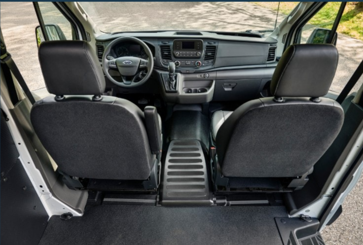 A new Parcel Delivery Package focuses on the needs of an industry seeing incredible growth. It starts with a number of design refinements standard for 2021 Transit that provide improved access to the cargo compartment. The manual parking brake on the floor by the driver’s seat has been replaced in all Transit vans up to 9,500 pounds GVWR by an electronic parking brake, creating a 50 percent wider clear aisle between the front seats.